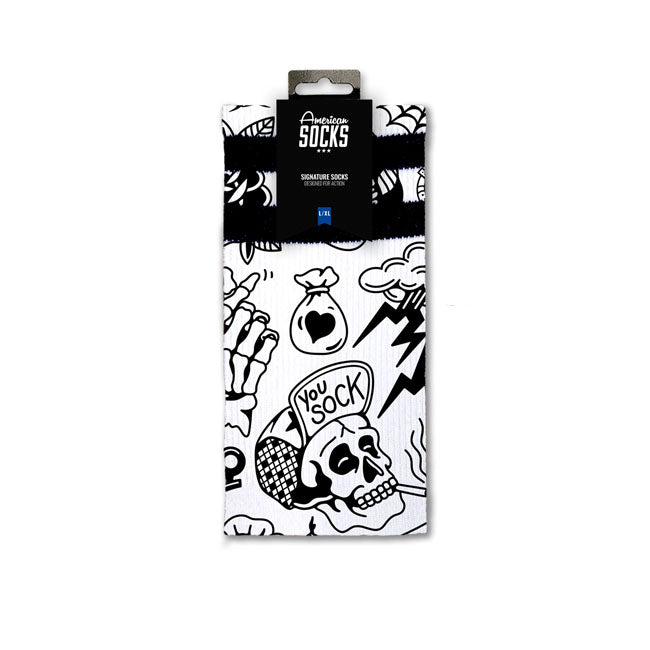 Verbessern Sie Ihr Sockenspiel mit American SocksDie Socken der Signature-Serie mit auffälligen, grafischen Motiven und einer verbesserten Coolmax®-Mischung sorgen den ganzen Tag für ein angenehmes Tragegefühl. Diese Socken wurden in Zusammenarbeit mit talentierten Künstlern entworfen und sind ein echter Hingucker, wo immer Sie hingehen.
