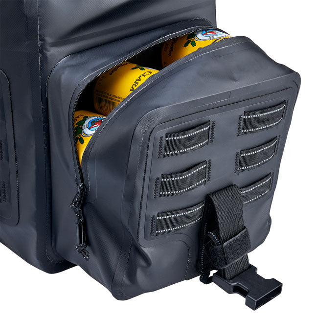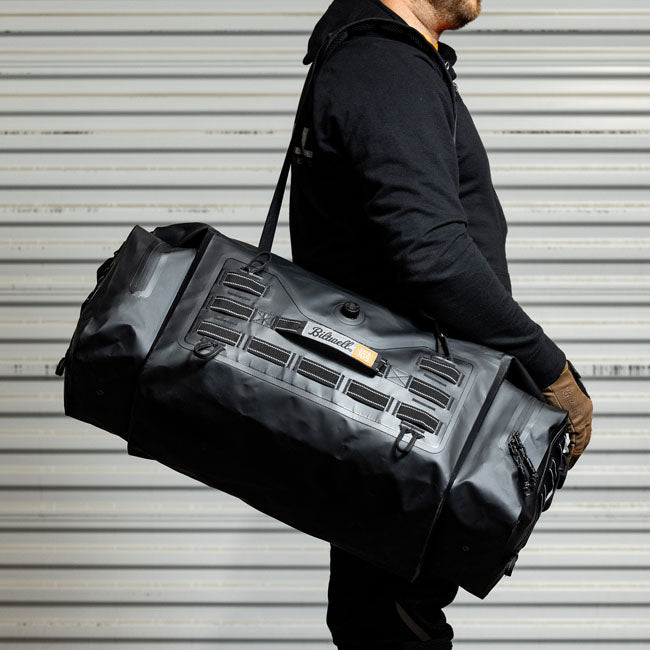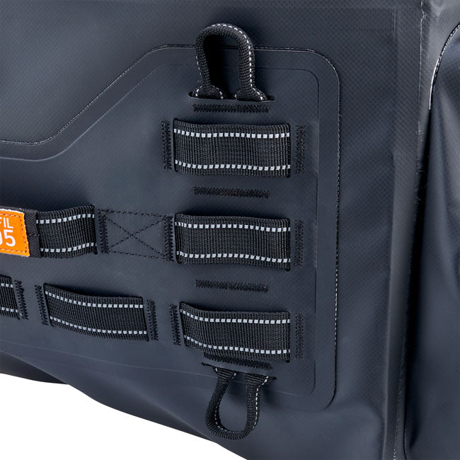 Die EXFIL-105 Dry Bag ist die größte Tasche der EXFIL-Reihe und wurde für lange Reisen entwickelt, bei denen maximale Stauraumkapazität und vollständige Wasserdichtigkeit unerlässlich sind. Sie kann seitlich auf einem großen Gepäckträger, einem Sitz oder über Satteltaschen befestigt werden und fasst beeindruckende 105 Dosen oder alle wichtigen Utensilien für längere Motorradreisen. Das Hauptfach ist dank thermisch verschweißter Nähte wasserdicht und staubdicht, während große Endtaschen einen schnellen Zugriff ermöglichen, ohne dass die Tasche abgenommen werden muss.