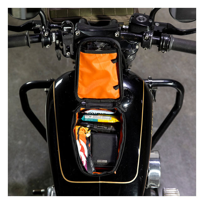 Die EXFIL-2 Mini-Tankrucksack ist eine kompakte Aufbewahrungslösung für den täglichen Gebrauch. Sie ist klein genug, um nicht zu stören, aber groß genug, um das Nötigste aufzunehmen. Mit drei starken Magneten lässt sie sich im Handumdrehen an jedem Stahltank befestigen, ohne dass Gurte erforderlich sind.