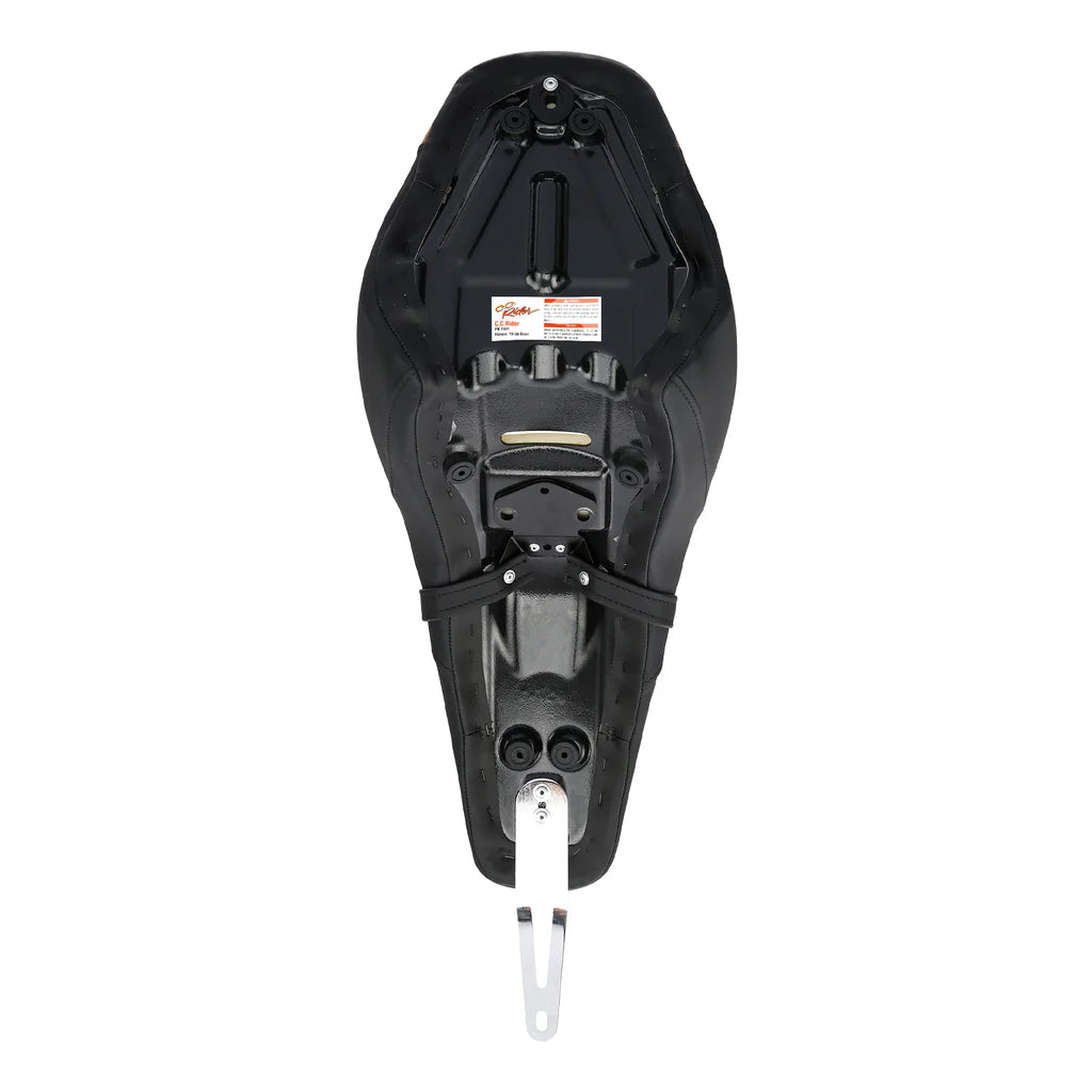 Dieser Step-Up-Sitz verleiht dem Motorrad ein niedrigeres, sportlicheres Aussehen. Die konturierte Polsterung reduziert die Sitzhöhe geringfügig und bringt den Fahrer etwas nach vorne, sodass er die Bedienelemente besser erreichen kann. Der breitere Sitzbereich verteilt den Druck gleichmäßig und bietet guten Komfort, ohne sich zu weich anzufühlen.