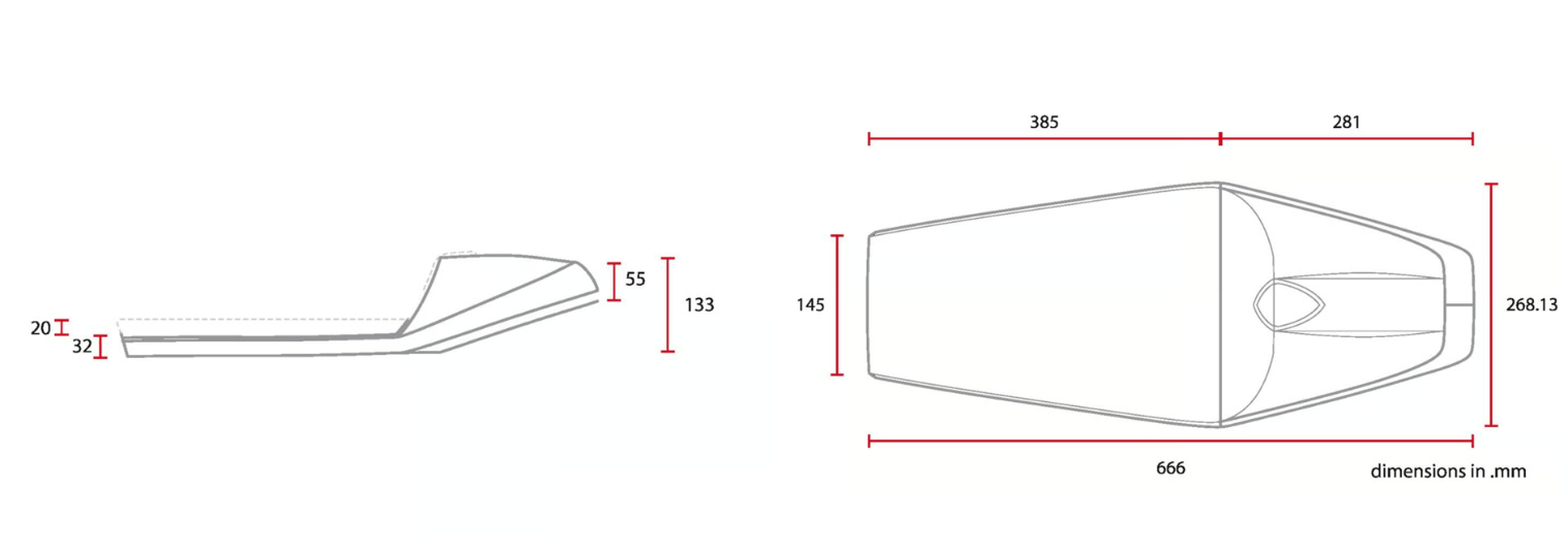Dieser Sitz zeichnet sich durch einen etwas moderneren Café-Stil mit schärferen Linien und einem kompakteren Heckprofil aus. Die Polsterung sorgt für einen klaren und raffinierten Look, während die Rautensteppung auf der Oberseite einen subtilen Kontrast bildet. Ein universelles Modell für alle, die eine moderne Interpretation des klassischen Café-Racer-Stils suchen.
