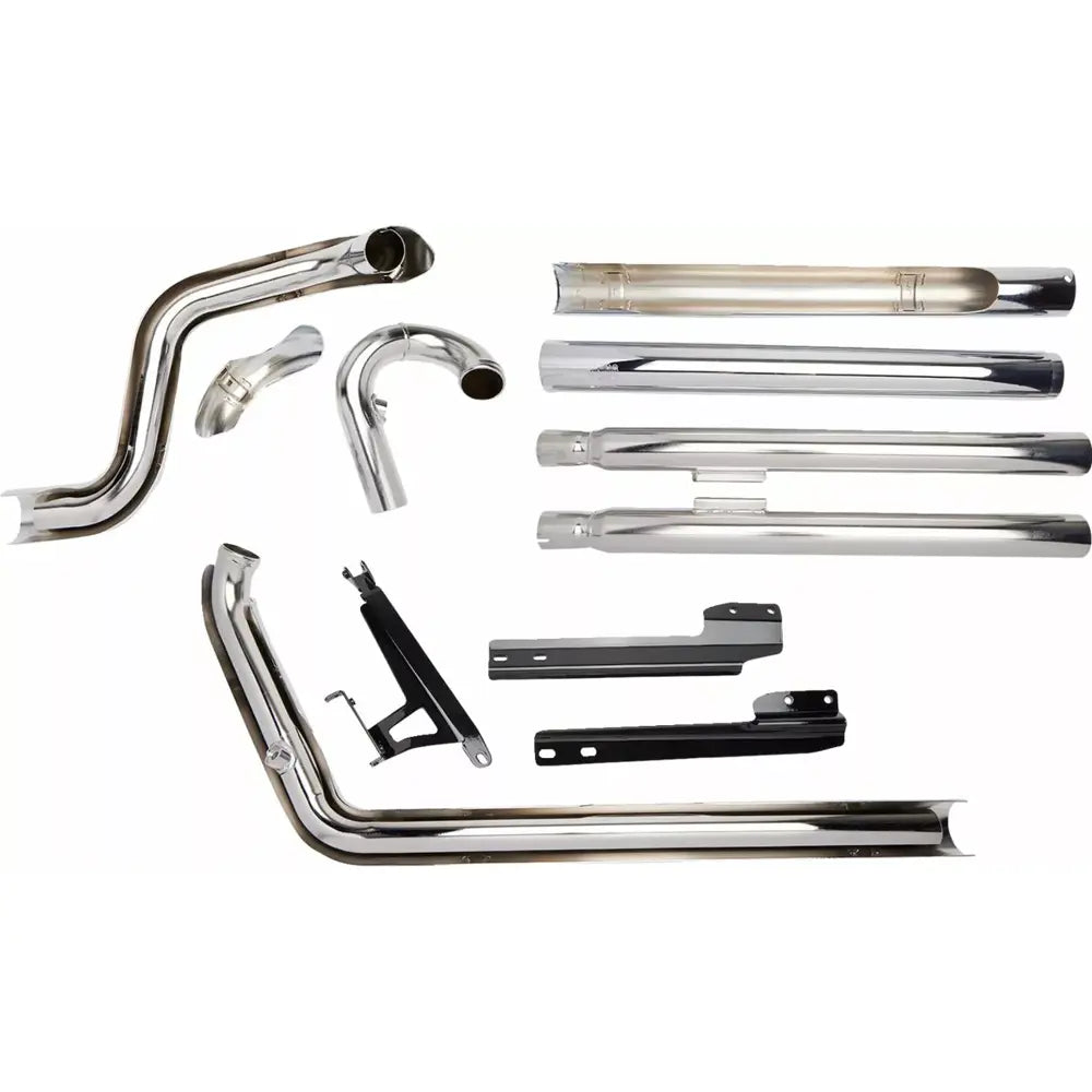 Die Cobra Der Bad Hombre Duals-Auspuff verleiht Ihrer Harley-Davidson einen klassischen, gestreckten Lowrider-Stil und steigert gleichzeitig die Leistung. Mit 1-3/4"-Auspuffrohren und 2-1/2"-Hitzeschilden sorgt diese Anlage für einen gleichmäßigen Auspuffstrom und verbessert das Drehmoment. Das Design mit zwei Auslässen, die Ausrichtung der Knüppelspitzen auf den hinteren Kotflügel und die abnehmbaren Schalldämpfer bieten sowohl Funktionalität als auch ein kultiges Aussehen.