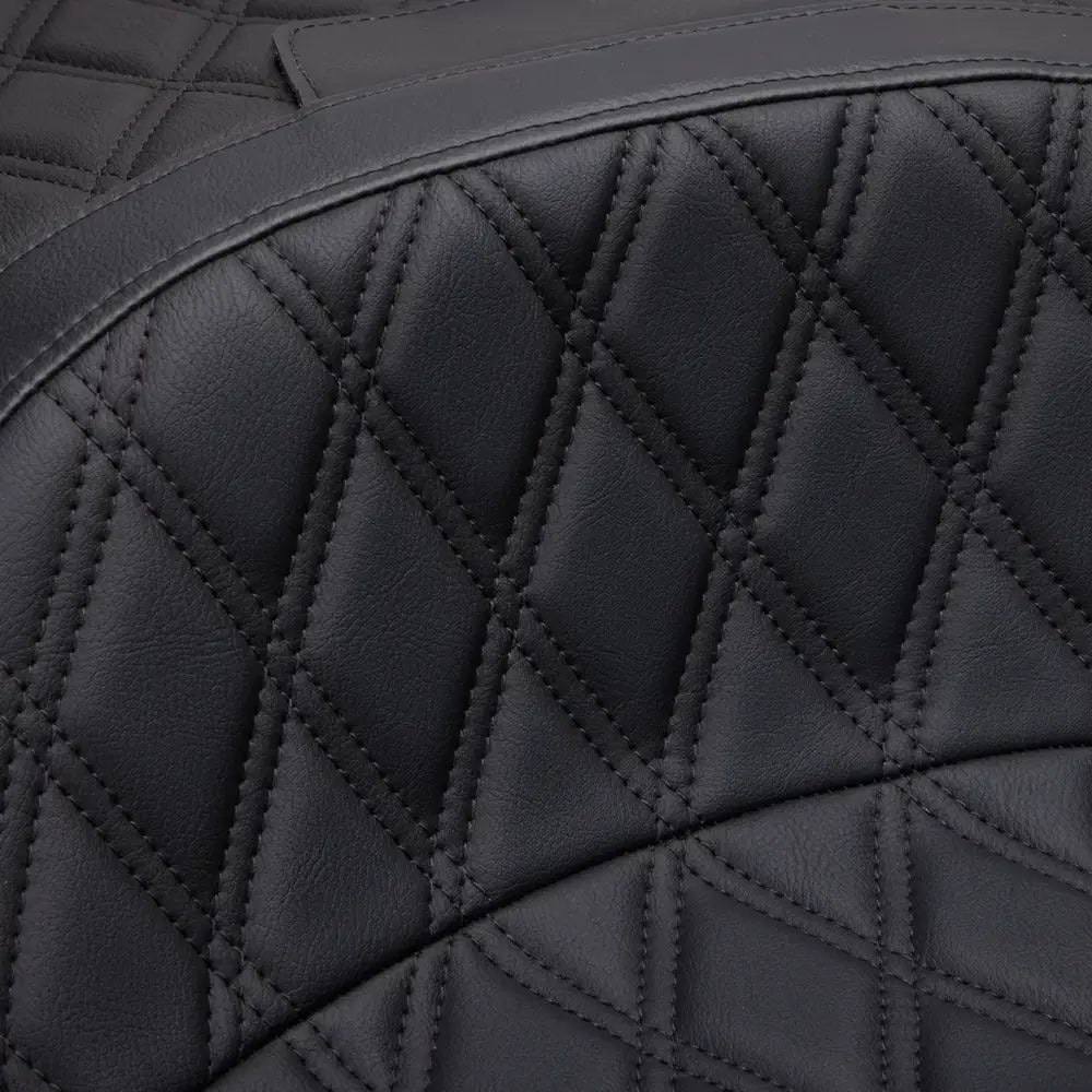 Bereit für lange Strecken mit Komfort? Der Drag Specialties Freedom Touring Sitz verleiht Ihrer Harley eine stützende, touring-taugliche Ausstattung mit einer hohen Rückenlehne für den Fahrer und einer Form, die Ihnen auch auf langen Fahrten einen festen Halt bietet. Die schmale Vorderseite erleichtert das Abstellen der Füße beim Anhalten, während das klare Design und die Rückenlehnenvorrichtung Ihnen ermöglichen, die Fahrt ganz an Ihren Stil anzupassen.