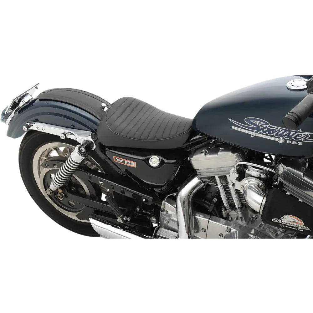 Hinweis für 82-03 XL Sportster: Für die Montage dieses Sitzes muss ein Loch in das hintere Schutzblech gebohrt werden, um ein mitgeliefertes Schutzblech-Mutter-Kit zu montieren.