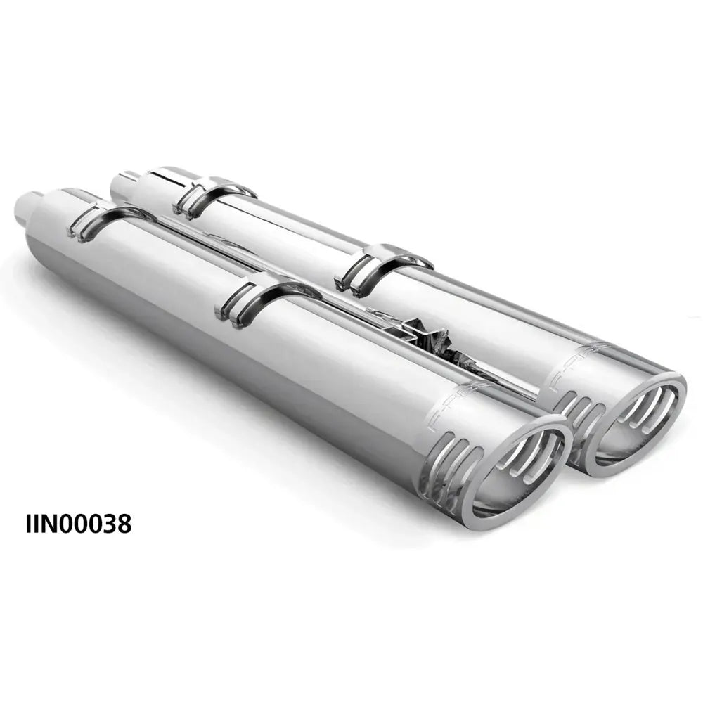 Bringen Sie Ihre Indian zum Brüllen mit diesen Slip-On-Schalldämpfern, die einen extrem tiefen und lauten Sound haben. Einfache Installation an den serienmäßigen Krümmern. Mit abnehmbaren Schalldämpfern für unübertroffenen Sound und Leistung.