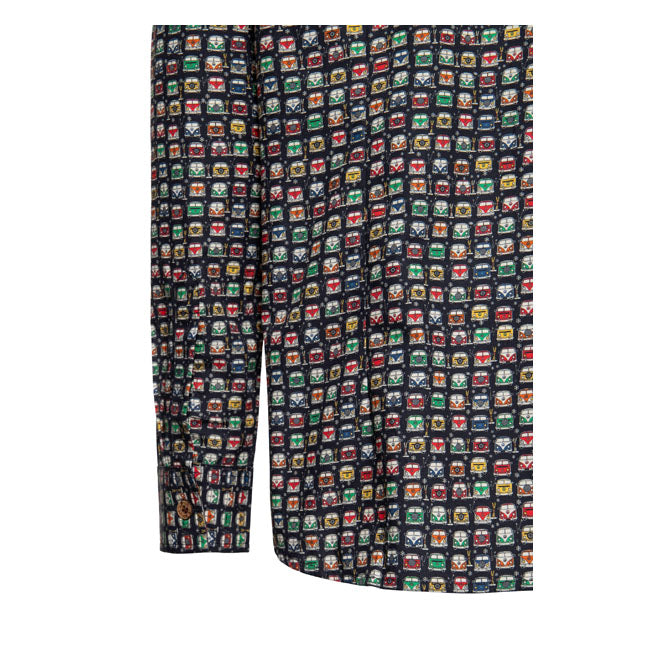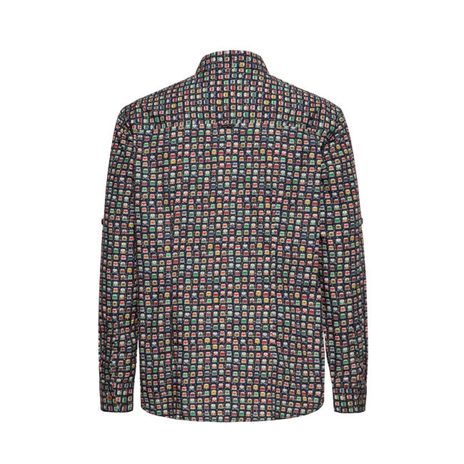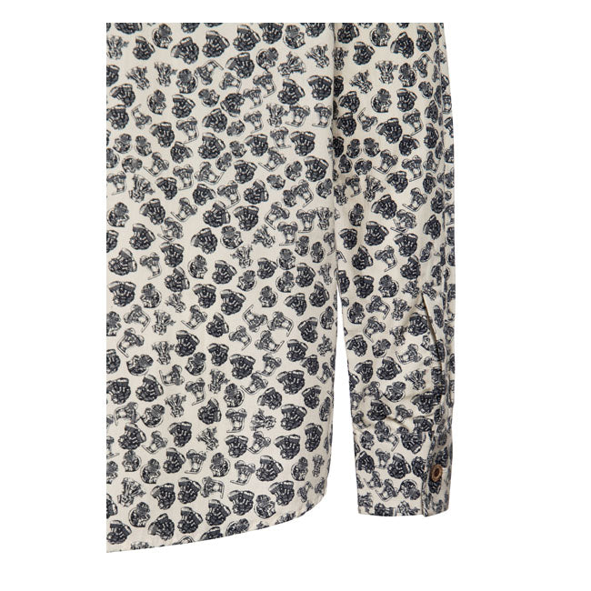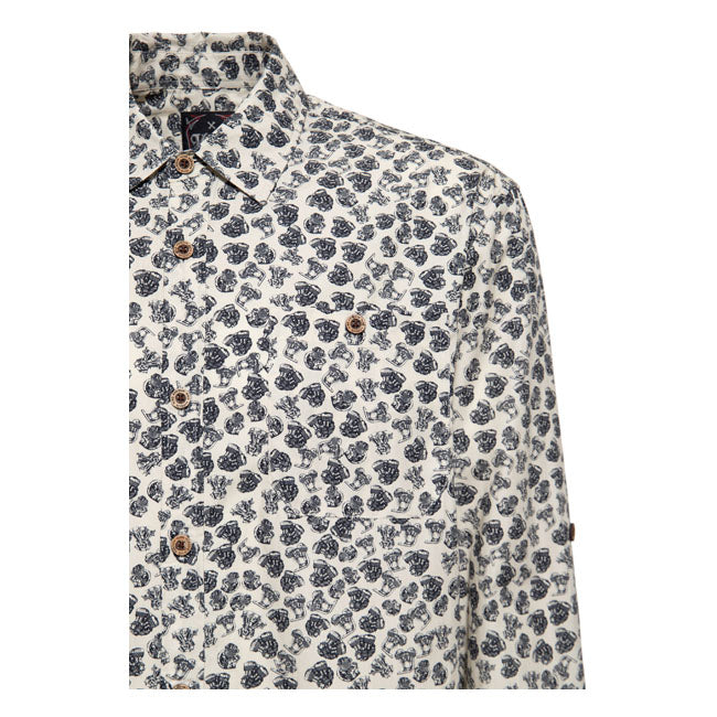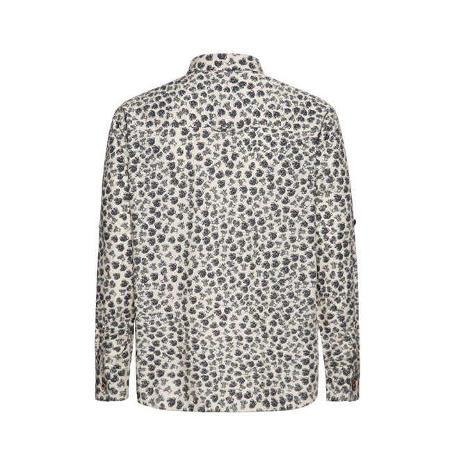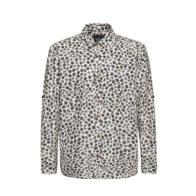 Langärmeliges Button-up-Hemd mit Allover-Druck und natürlichen Details. Ein bisschen klassisch, ein bisschen ausgefallen, genau so, wie es sein soll.