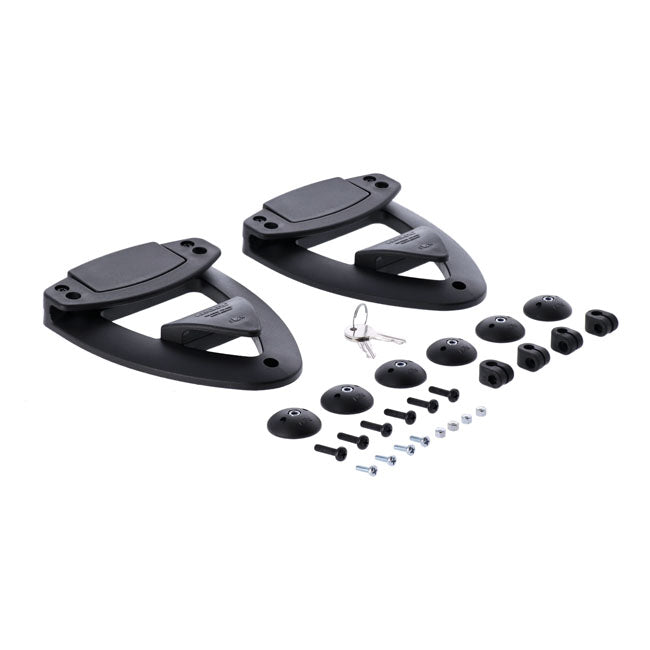 Diese Taschen verwenden das Longride Click-On-System, mit dem sie sich in Sekundenschnelle anbringen und abnehmen lassen. Jede Tasche wird mit einer Click-On-Befestigung geliefert, die an der Rückseite der Tasche angebracht wird. Sie rastet in die Halterungen am Motorrad ein (hier separat erhältlich), die für die Montage erforderlich sind. Die Halterungen sind als Direktanpassung für viele Motorräder oder in Universalversionen erhältlich. Diese Taschen können auf Wunsch auch ohne das Click-On-System verwendet werden.