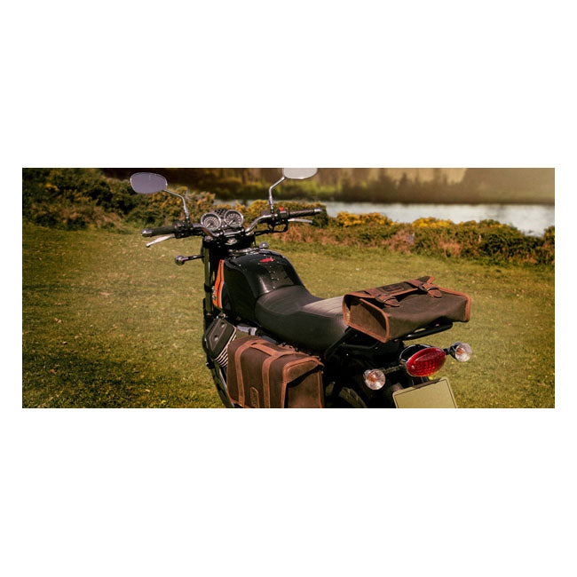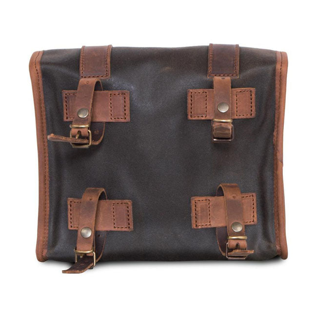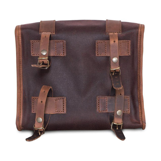 Die Mini Ammo Vintage-Satteltasche ist eine kompakte Tasche im Retro-Stil, die für klassische und Retro-Motorräder entwickelt wurde. Sie wird aus 22 oz gewachster Baumwoll-Canvas und pflanzlich gegerbtem Vollnarbenleder handgefertigt und bietet Langlebigkeit, Wasserfestigkeit und einen Vintage-Look, der mit der Zeit immer schöner wird.