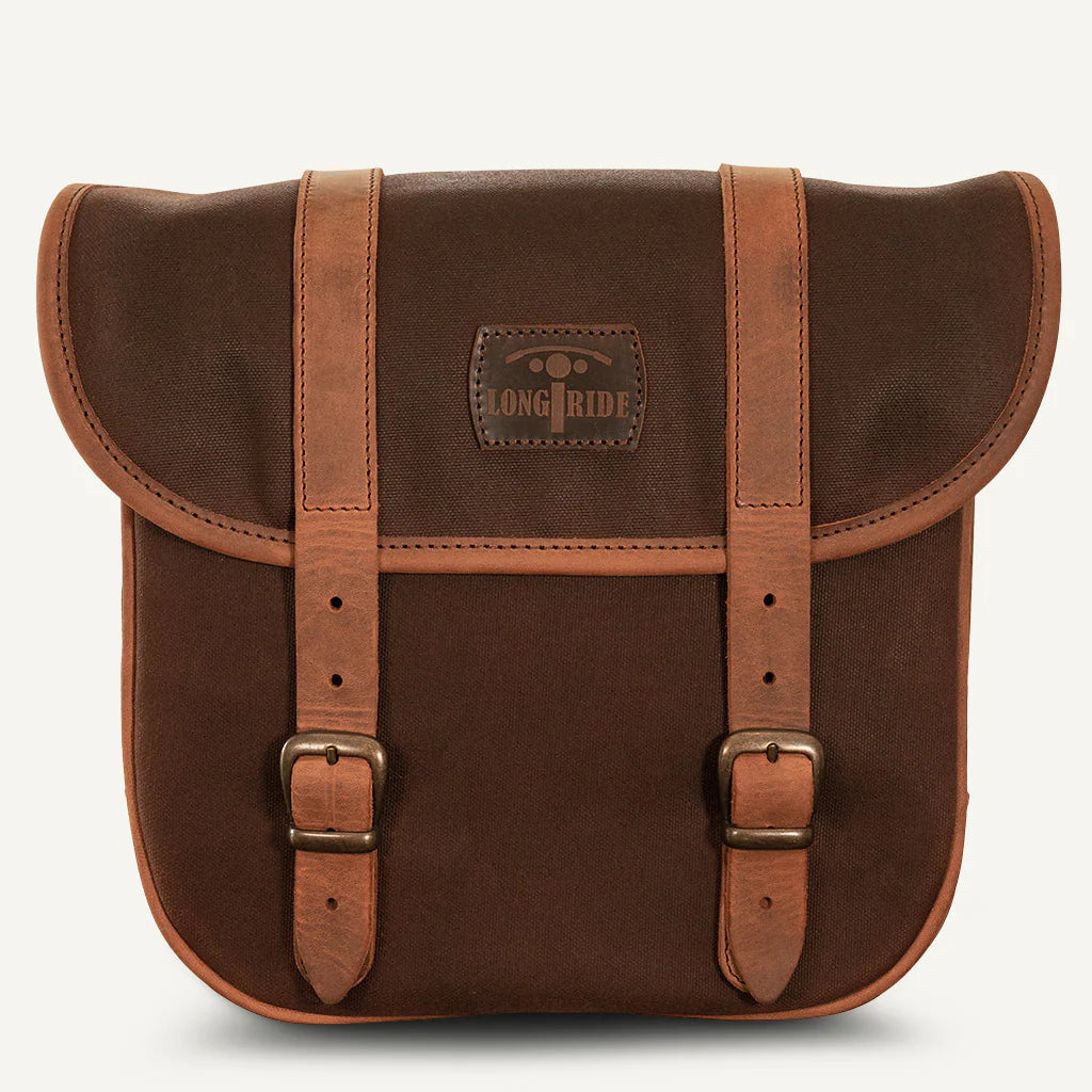 Diese Longride Pannier Vintage-Satteltaschen verleihen Ihrem Motorrad klassischen Stil und Funktionalität. Handgefertigt aus wetterbeständiger gewachster Baumwolle und dickem, pflanzlich gegerbtem Vollnarben-Rindsleder. Dank des verstellbaren Designs sind sie mit den meisten Motorrädern kompatibel und lassen sich in Sekundenschnelle anbringen oder abnehmen.