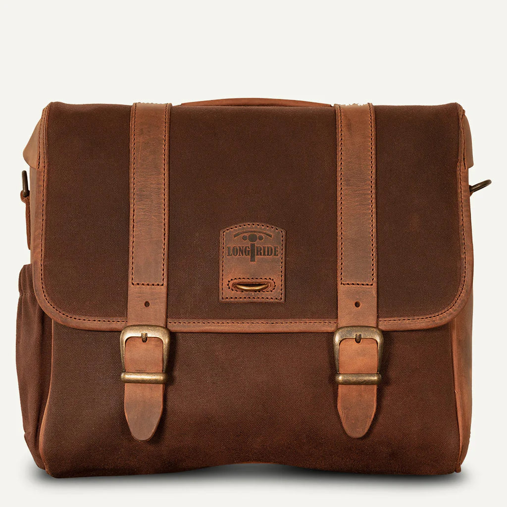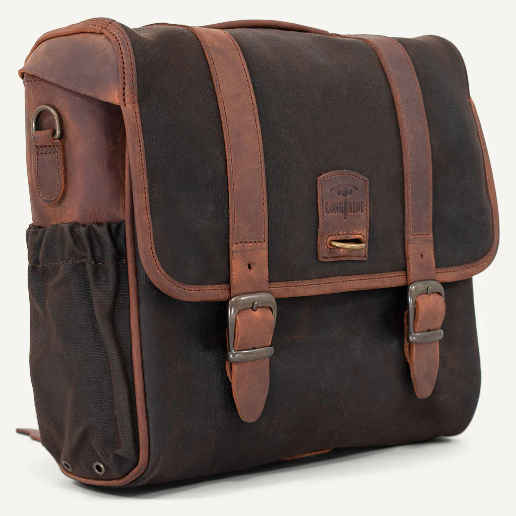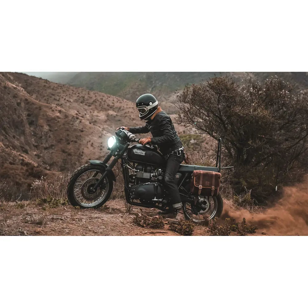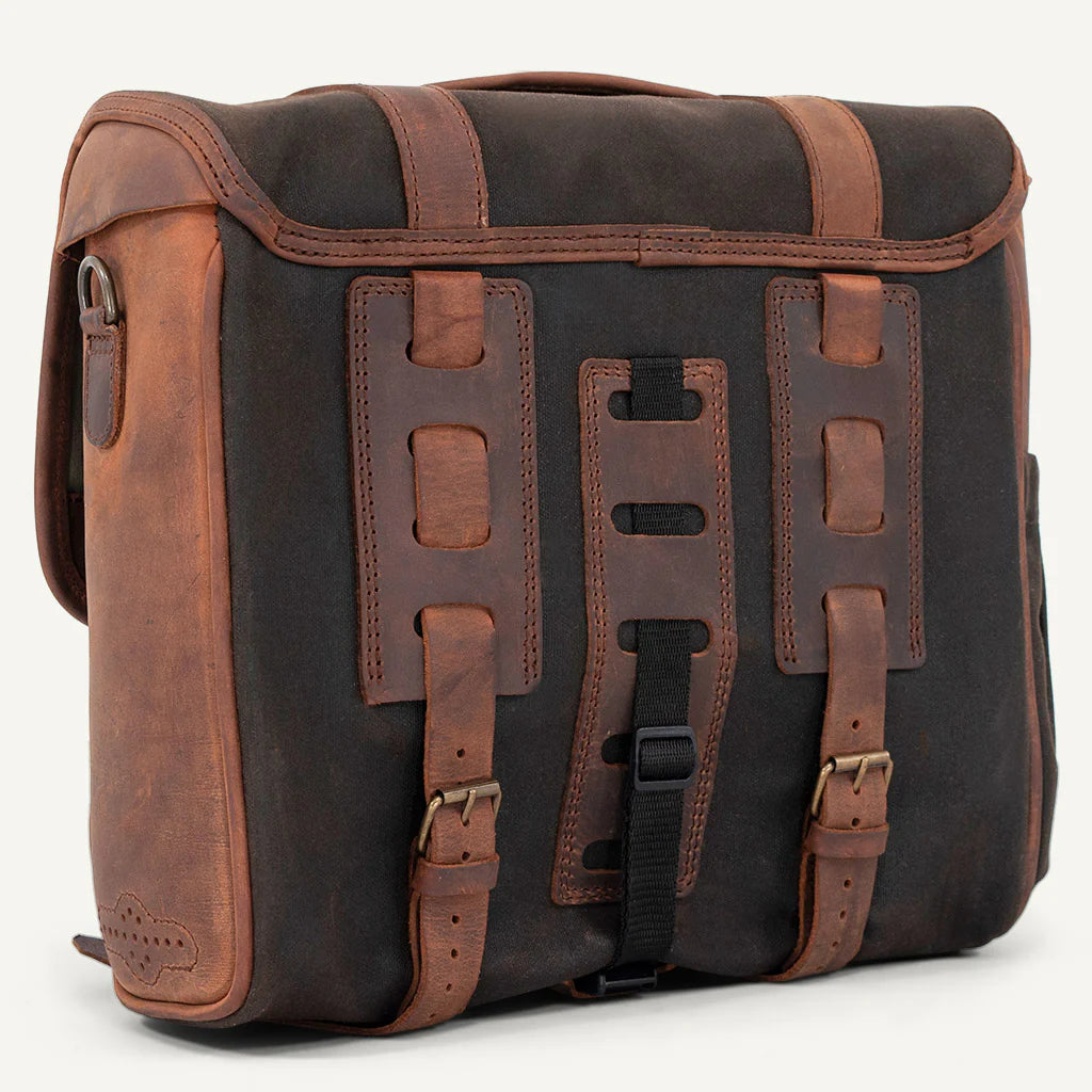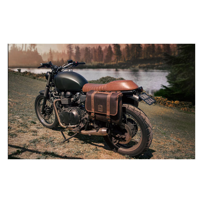 Die Vintage-Satteltasche Racer verleiht Ihrem Motorrad einen zeitlosen Retro-Stil mit moderner Funktionalität. Handgefertigt aus wetterbeständiger gewachster Baumwolle und dickem, pflanzlich gegerbtem Vollnarben-Rindsleder.
