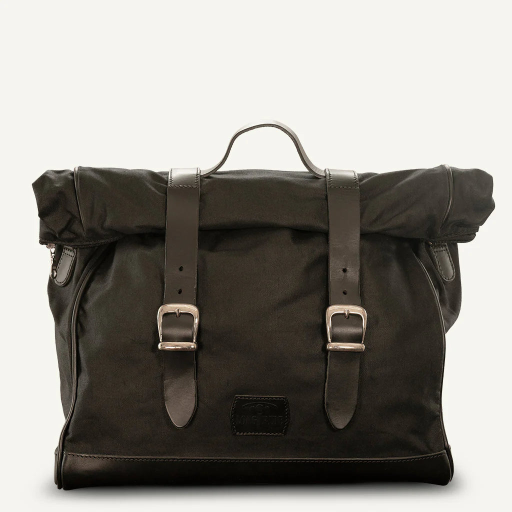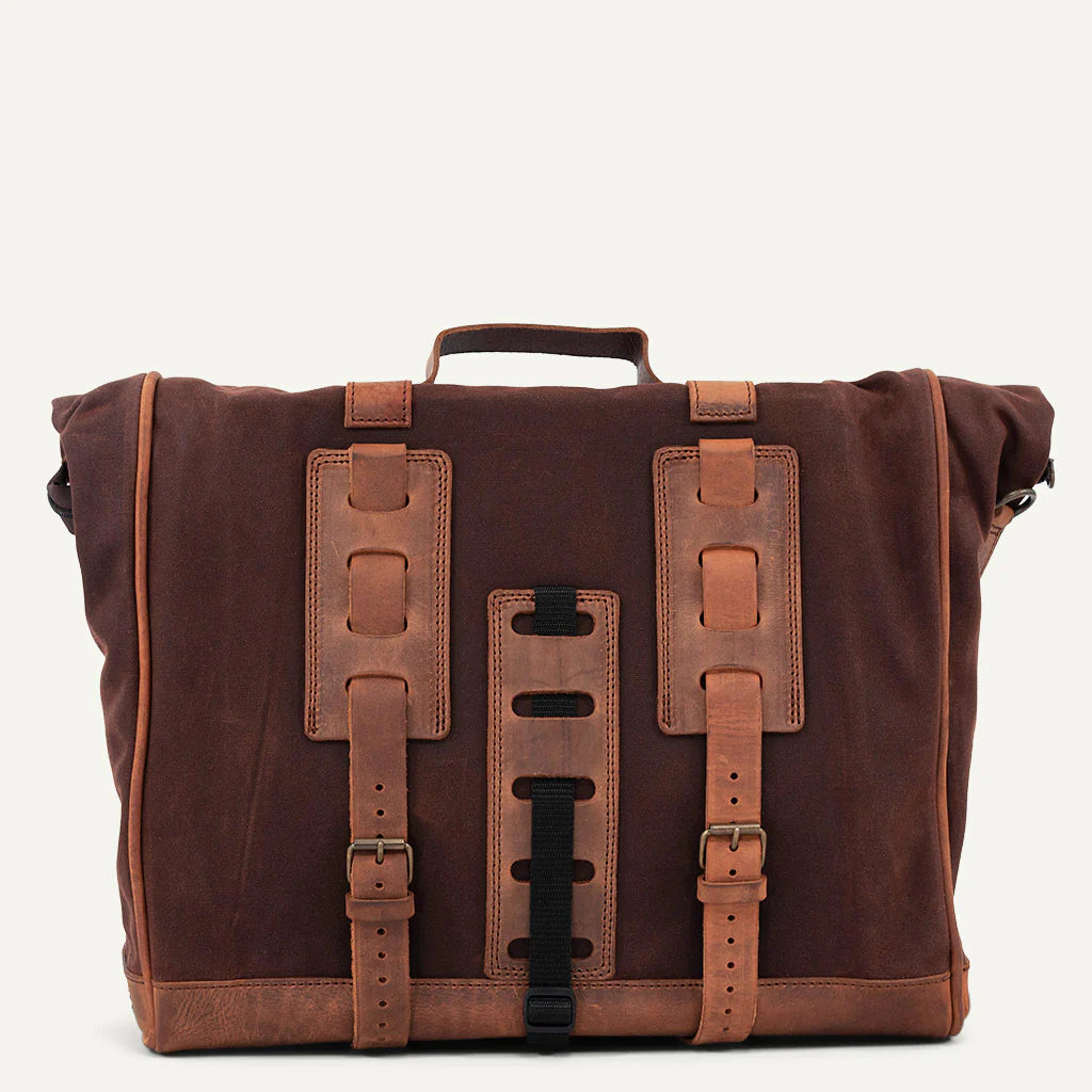 Die universelle Vintage-Satteltasche Super Patriot Roll Top wurde von den Armeesatteltaschen aus dem Zweiten Weltkrieg inspiriert. Die Tasche ist aus hochwertigem 22-Unzen-Canvas aus Frankreich und belgischem pflanzlich gegerbtem Leder gefertigt.