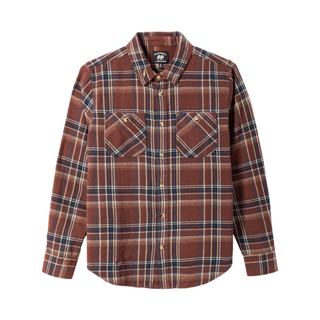 Ein Flanellhemd mit Haltung. Das Charlie Shirt von Loser Machine und Mooneyes kombiniert weiche Baumwolle mit durchdachten Details wie Schildkrötenknöpfen und einer Glücksbringer-Anstecknadel. Schlichter Look, dezentes Branding.