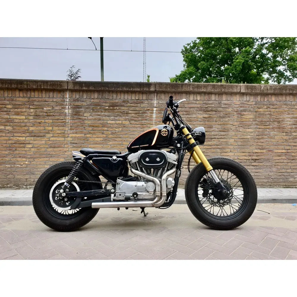 Bringen Sie den Stil Ihrer Sportster auf die nächste Stufe mit der Mad Switch Auspuffanlage. Handgefertigt in den Niederlanden aus rostfreiem Stahl. Diese Rohre sind mit Präzision und einem unverwechselbaren, vom Rennsport inspirierten Look gebaut. Mit rohem Edelstahl und freiliegenden Schweißnähten sind sie perfekt für Fahrer, die einen rohen, aggressiven Look wollen - egal ob für die Rennstrecke, die Show oder die Straße.