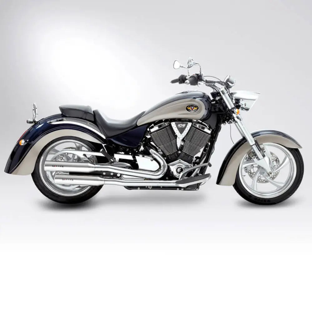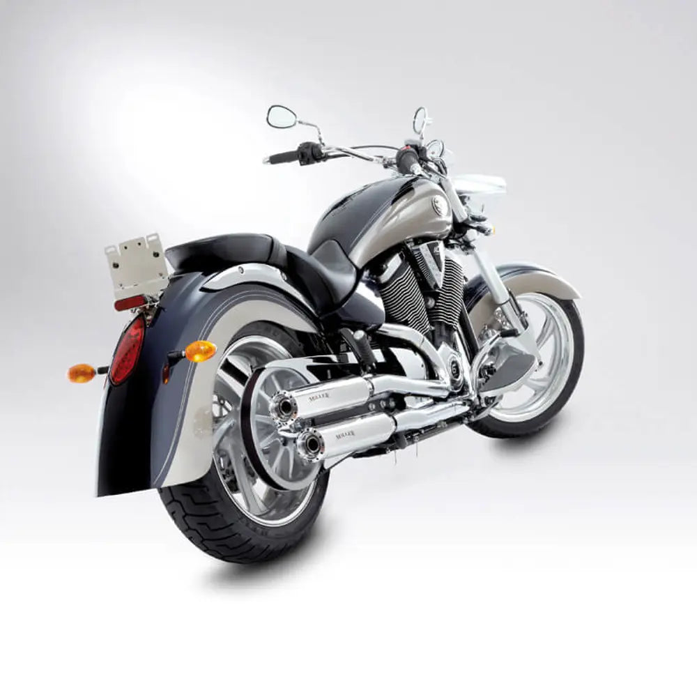 Die Miller California II Slip-On-Schalldämpfer sind das perfekte Upgrade für Victory Cruiser-Modelle. Mit Euro 3-Zulassung und einfacher Schraubmontage erhalten Sie einen viel tieferen Klang bei voller Straßenzulassung.