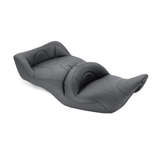 Der Standard Touring 2-Up-Sitz verwandelt Ihre Gold Wing in eine wirklich komfortable Langstreckenmaschine. Das tief konturierte Design sorgt dafür, dass Sie tiefer und näher am Motorrad sitzen, wodurch Sie eine bessere Kontrolle und ein entspannteres Gefühl auf langen Fahrten haben. Sowohl Fahrer als auch Beifahrer profitieren von Mustangs speziell entwickeltem Schaumstoff mit kontrollierter Dichte, der das Gewicht gleichmäßig verteilt und Druckpunkte reduziert, um maximalen Komfort zu gewährleisten.