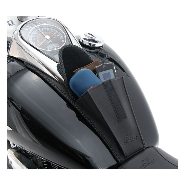 Dieses Tank-Lätzchen sorgt für zusätzliche Funktionalität, ohne die Linienführung des Motorrads zu beeinträchtigen. Es schmiegt sich eng an den Tank an und wird mit den serienmäßigen Halterungen befestigt, sodass die Montage ganz einfach ist. Die integrierte Tasche bietet Platz für kleine Utensilien, und die Filzrückseite schützt den Lack darunter.