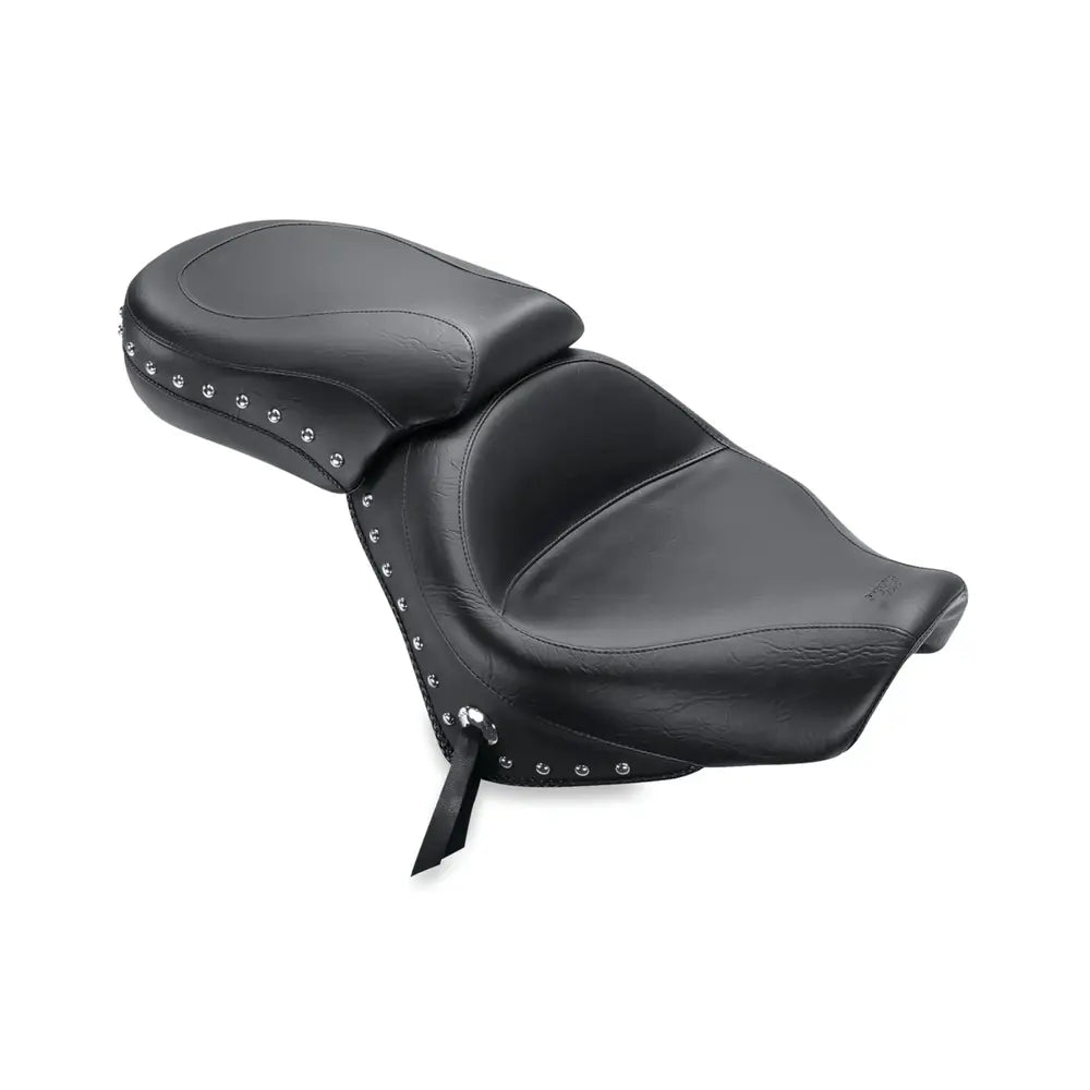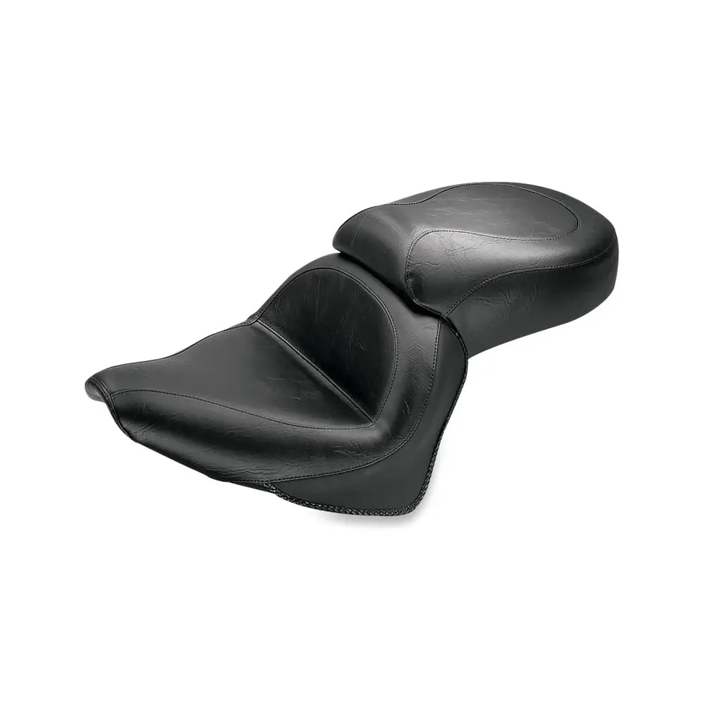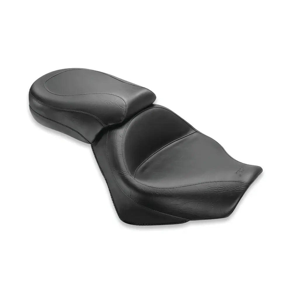 Der breite Touring 2-Up von Mustang bietet dem Fahrer herausragenden Komfort. Der tief konturierte Fahrerbereich hält Sie sicher in einer entspannten Fahrposition mit solider Rückenstütze, während der Beifahrerbereich nach vorne verlängert ist und wie eine integrierte Rückenlehne funktioniert.