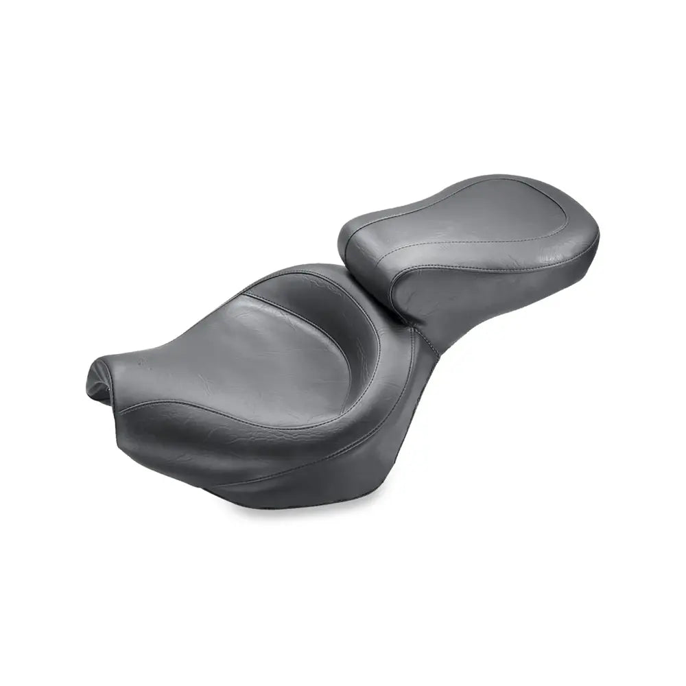 Der Standard Touring 2-Up von Mustang bietet dem Fahrer einen deutlichen Komfortgewinn, ohne das natürliche Fahrgefühl des Motorrads zu verändern. Der tief konturierte Fahrerbereich sorgt für Stabilität und Komfort, während der Beifahrersitz nach vorne verlängert ist und wie eine integrierte Rückenlehne funktioniert. Beide Sitzbereiche sind für Komfort auf langen Strecken ausgelegt und auf einer stabilen Glasfaserbasis aufgebaut, die für einen sicheren und dauerhaften Halt sorgt.