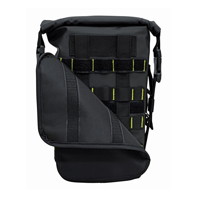 Die Hurricane RiggPak ist eine vielseitige, wasserdichte Tasche, die an Sturzbügeln, Gepäckträgern oder Sitzen befestigt werden kann und zusätzlichen Stauraum für jede Fahrt bietet. Sie besteht aus UV-behandeltem PVC-Planenstoff mit elektronisch heißverschweißten Nähten, ist 100% wasserdicht und für raue Bedingungen ausgelegt. Der Rollverschluss mit Schnellverschlüssen hält die Ausrüstung sicher und trocken, während das MOLLE-System die einfache Befestigung von zusätzlichem Zubehör ermöglicht.