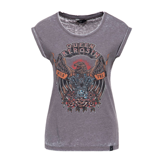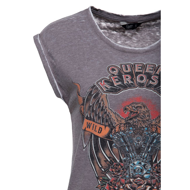 Mit seinem verwaschenen Vintage-Look und dem Adler-Print verleiht dieses T-Shirt von Queen Kerosin alltäglichen Outfits einen frechen Touch. Die schmale Passform und die hochgekrempelten Ärmel runden den klassischen Biker-Look ab.