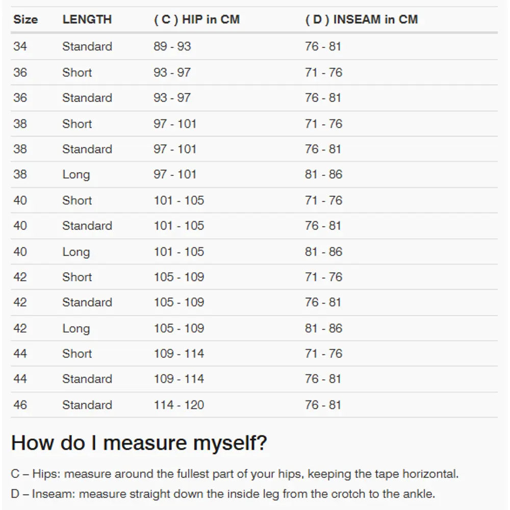 - Two slit pockets on upper legs