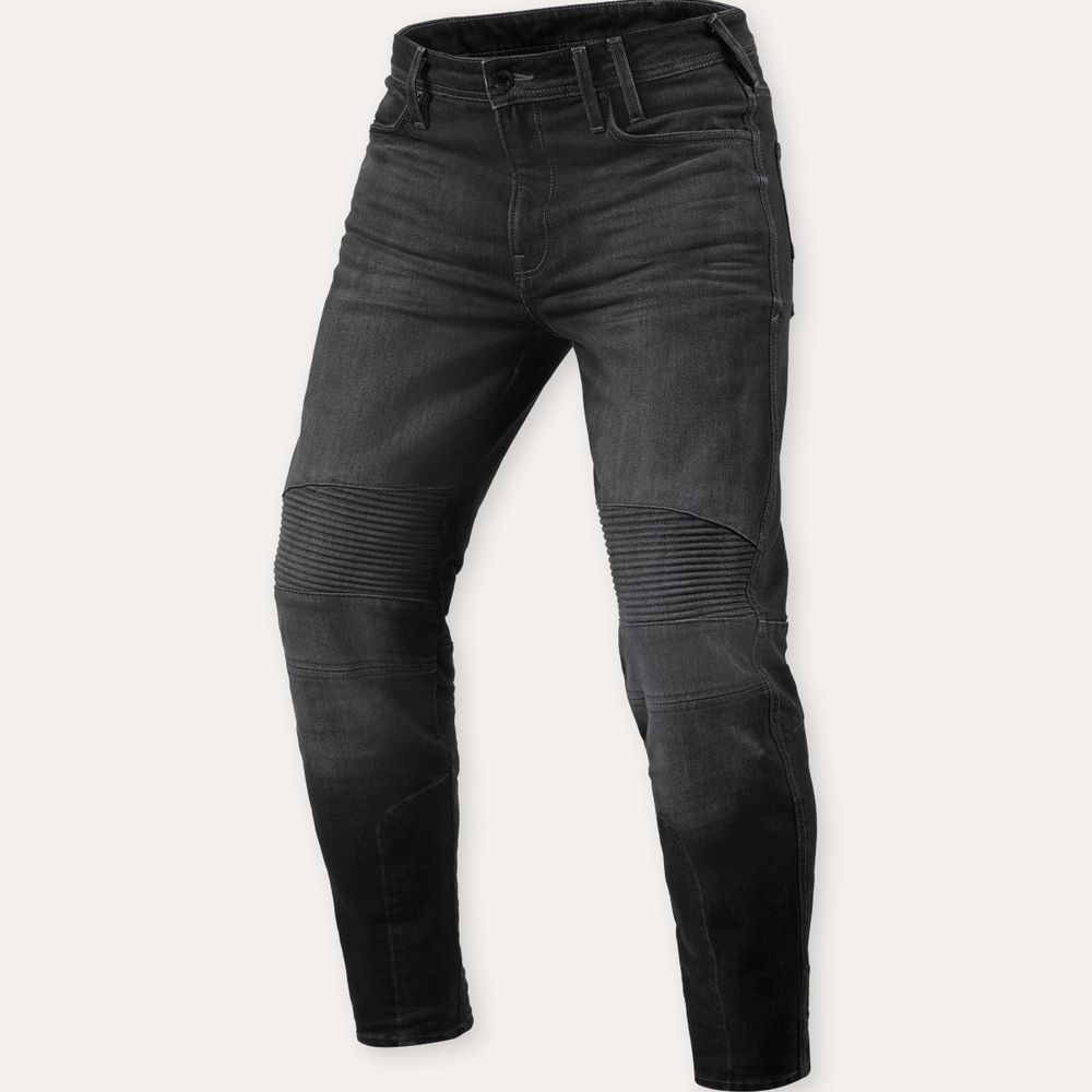 Die REV'IT! Moto 2 TF Jeans vereinen sportliches Design mit praktischer Alltagstauglichkeit. Mit ihrer konischen Passform, die der Silhouette von Leder-Rennhosen nachempfunden ist, bieten diese Jeans Komfort im oberen Bereich und ein schlankeres Profil vom Knie abwärts – perfekt für einen sportlichen, modernen Look auf und neben dem Motorrad. Stretch-Einsätze sorgen für volle Bewegungsfreiheit, während hochwertige Materialien und Sicherheitsmerkmale sie zu einem ernstzunehmenden Teil der Motorradbekleidung machen. Egal, ob Sie eine lange Tour unternehmen oder stilvoll zur Arbeit pendeln, die Moto 2 TF ist für alles bereit.