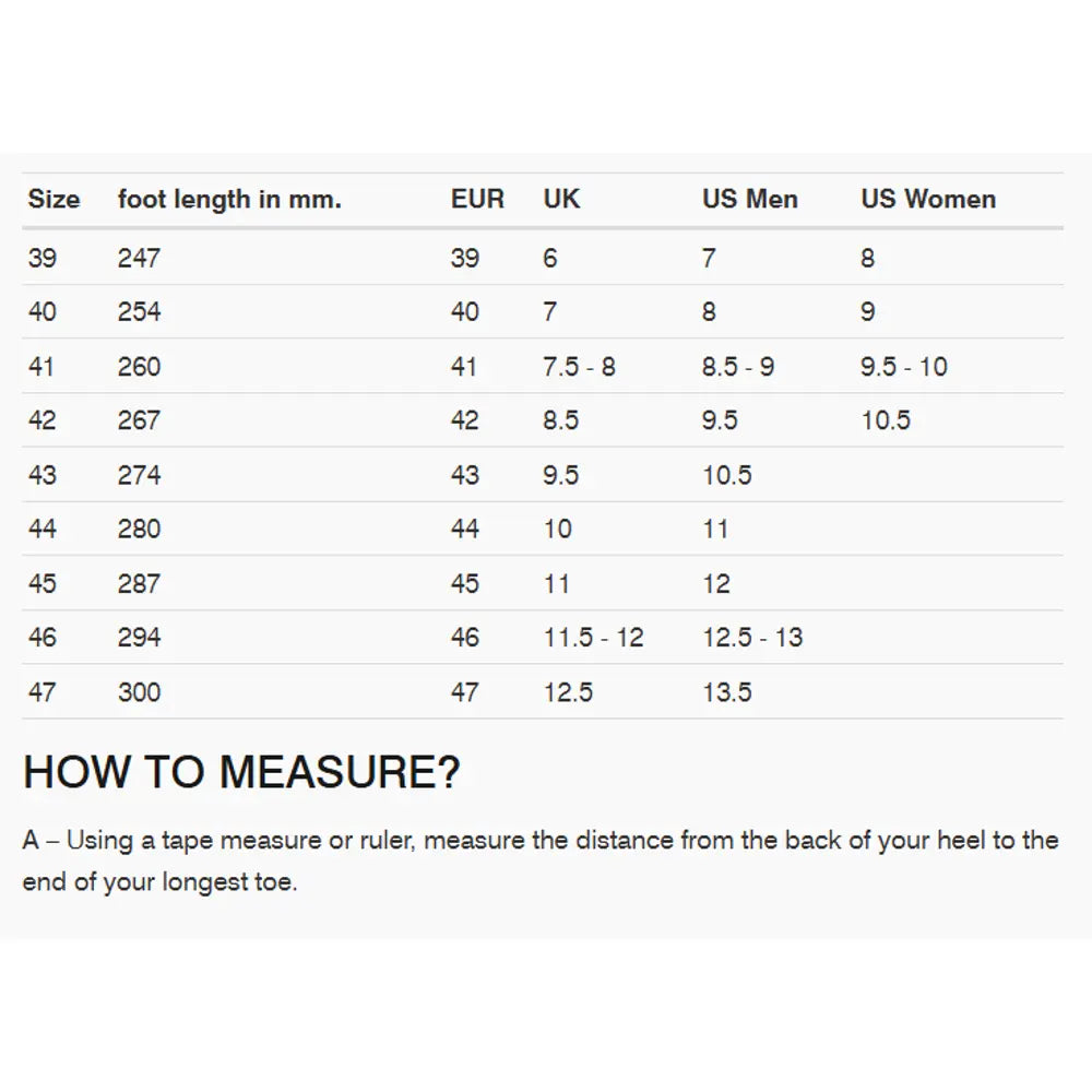 - Outsole made of 60% rubber and 40% EVA