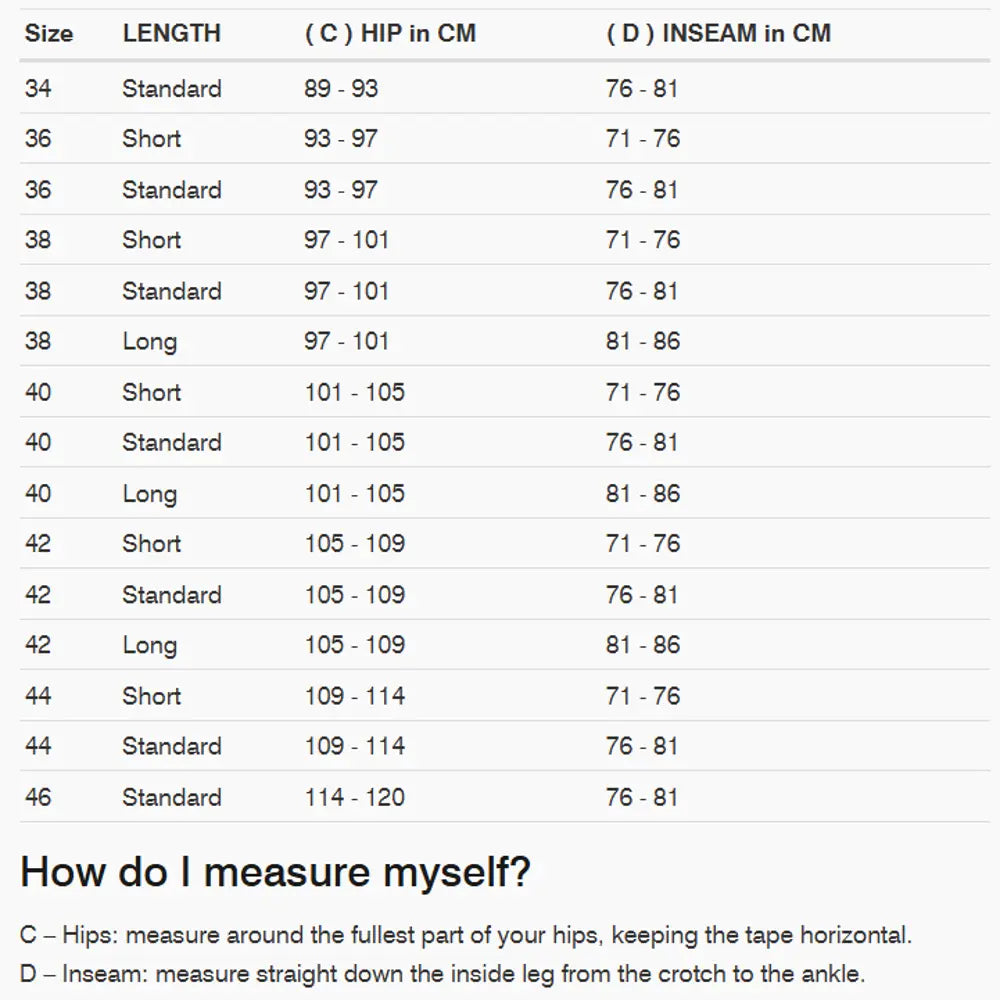 - Ventilation panels on front thighs for airflow on warmer days
