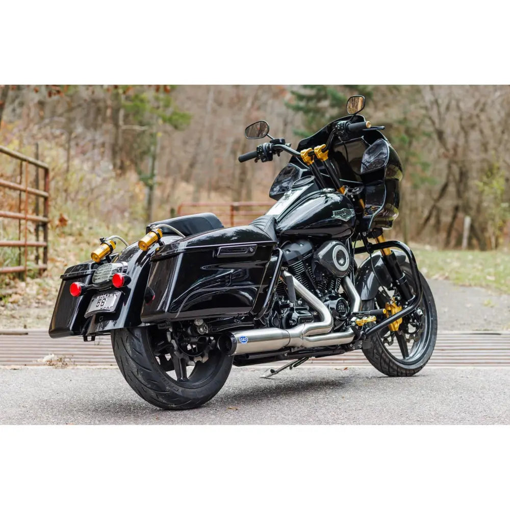 Sind Sie bereit, Ihre Harley-Davidson auf die nächste Stufe zu heben? Die S&S Qualifier Stainless Steel 2-into-1 Auspuffanlage ist für Fahrer gemacht, die auf der Suche nach ernsthafter Leistung und dem Sound des Donners sind. Inspiriert von der King of the Baggers Rennmaschine, wurde diese Anlage entwickelt, um maximale Leistung und einen renntauglichen Look zu liefern.