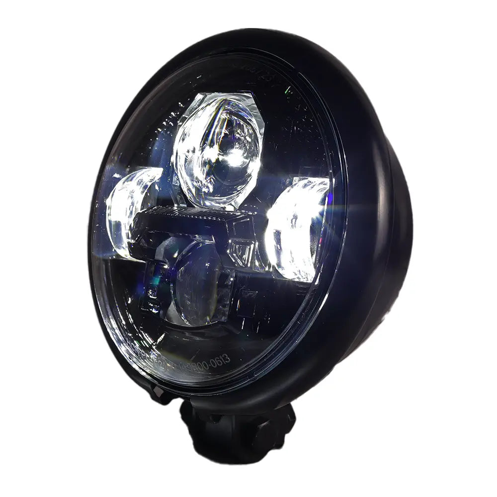 Zu den Hauptmerkmalen dieses LED-Scheinwerfers gehört das Fehlen eines Halo-Rings oder Positionslichts, wodurch ein schlankes und stromlinienförmiges Aussehen gewährleistet wird. Dieser LED-Scheinwerfer passt in die meisten 5,75-Zoll-Scheinwerfergehäuse und wird komplett mit Verkabelung und einem 3-poligen Stecker geliefert, der mit einer Standard-H4-Glühbirne identisch ist und eine einfache Plug & Play-Umrüstung ermöglicht.