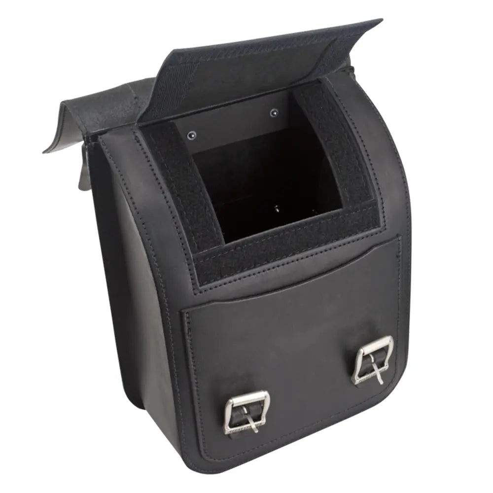 Die Texas Leather quadratische Schwingtasche ist eine saubere und kompakte Aufbewahrungsmöglichkeit, die sich perfekt in Ihre Softail. Sie ist aus echtem Leder gefertigt und lässt sich problemlos an der linken Seite des Motorrads befestigen.