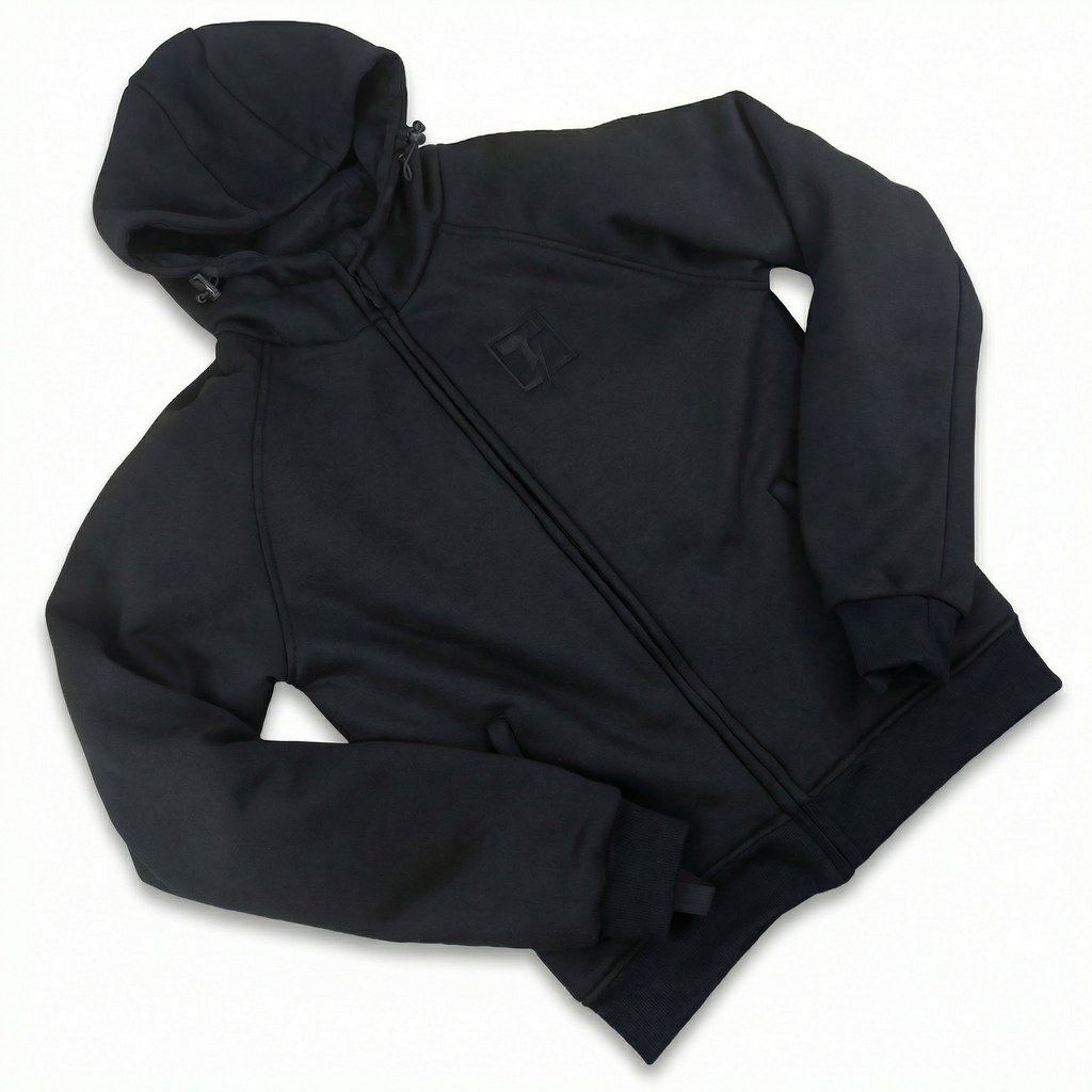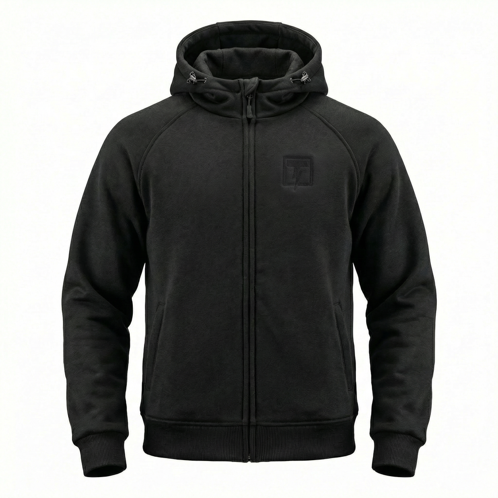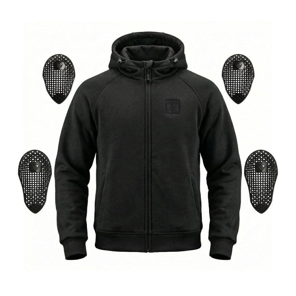 Fahren Sie sicher, bequem und stilvoll mit dem THNDR Blackout II Kevlar-Hoodie.