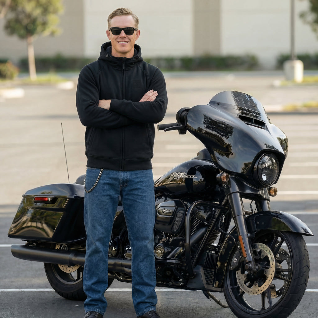 Trage ihn den ganzen Tag wie deinen Lieblings-Hoodie und steige dann ohne zu zögern auf das Motorrad. Er sieht vielleicht wie ein ganz normaler Hoodie aus, aber er steht dir bei, wenn es darauf ankommt.