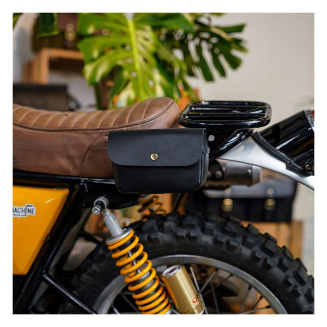 Die Sidekick Motorradtasche ist eine kompakte Ledertasche, die sich sowohl auf Ihrem Motorrad als auch abseits davon bewährt. Ursprünglich als Lenkertasche konzipiert, erwies sie sich schnell als überall auf dem Motorrad einsetzbar und ebenso praktisch zum Mitnehmen. Sie ist aus dickem, strapazierfähigem Leder handgefertigt und für jahrelangen Gebrauch ausgelegt, wobei sie mit der Zeit eine einzigartige Patina entwickelt.